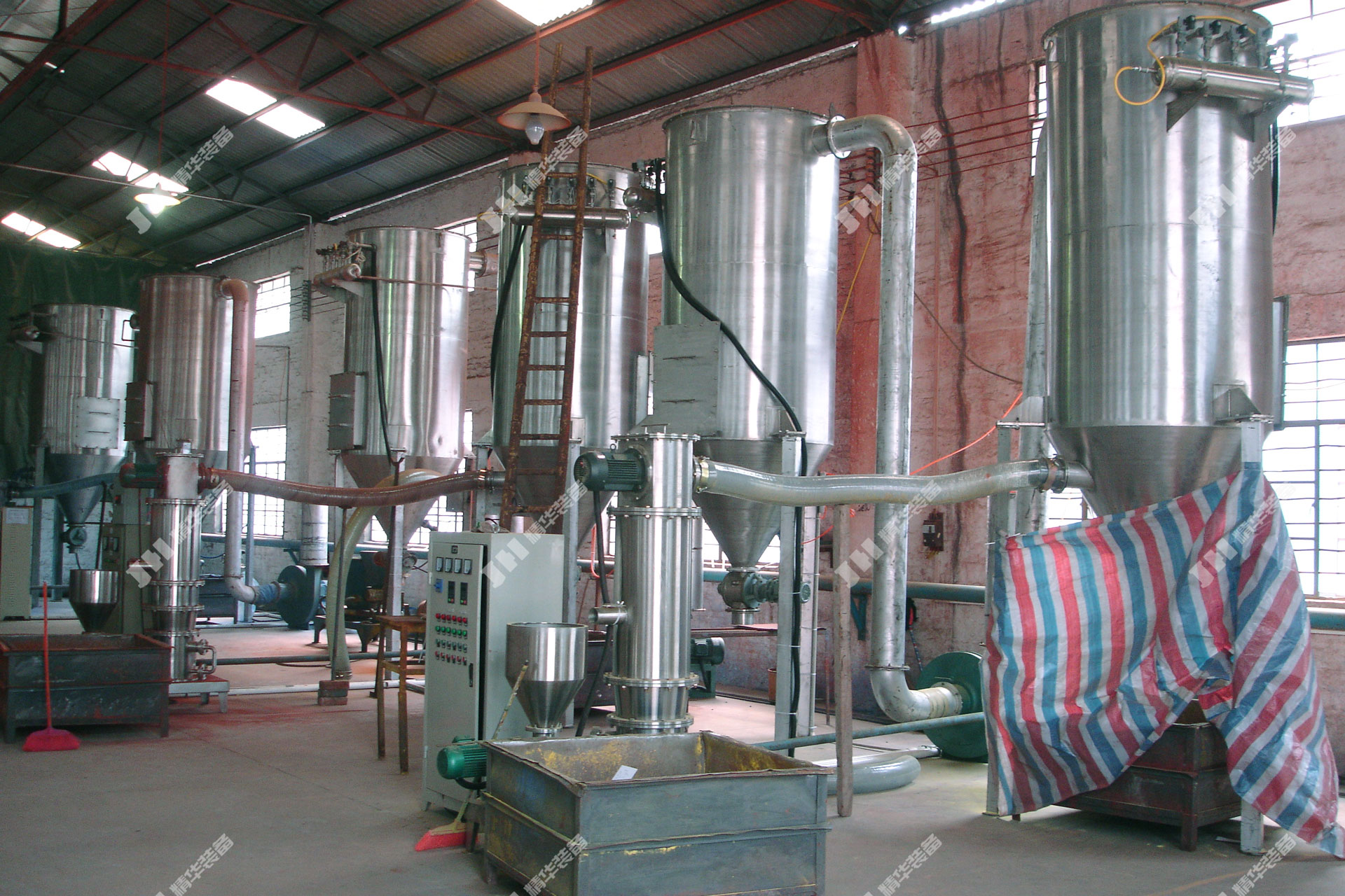 1. Feeding system 2. Modify the main machine 3. Cyclone collector 4. Dust collector 5. Induced draft fan