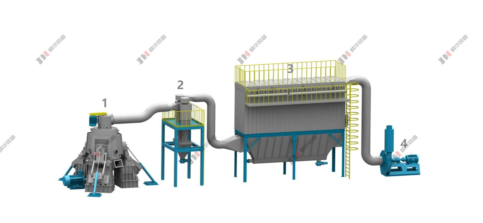1. Vertical grinding superfine grinding machine 2. Cyclone collector 3. Pulse dust collector 4. Induced draft fan
